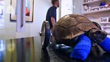 Cheryl helps exotic animals vet Matthew give an injured tortoise a turbo boost. (R)