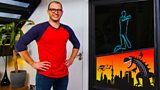 Ricky is light on his feet as he makes a dancing animation from neon lights. (R)