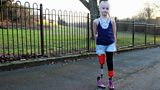 10/18 Daisy May models at London Kids Fashion Week with her blade prosthetics. (R)
