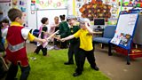 2/20 The children dress up as knights and fairy princesses and make shields and magic wands. (R)