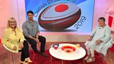 Byddwn ni'n dymuno pob lwc i d卯m Cymru wedi iddyn nhw gyrraedd Siapan ar gyfer Cwpan Ry... (A)